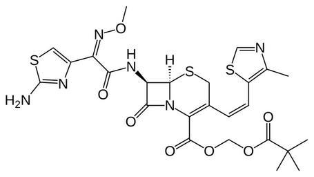 | Keywords: Cefditoren pivoxil.svg validSVG Skeletal formula of cefditoren pivoxil a prodrug of cefditoren Created using http //www acdlabs com/download/chemsk html ACD/ChemSketch 10 0 and Inkscape Own 2008-08-24 Fvasconcellos Cephalosporin antibiotics Oximes Aminothiazoles Prodrugs Pivalate esters |