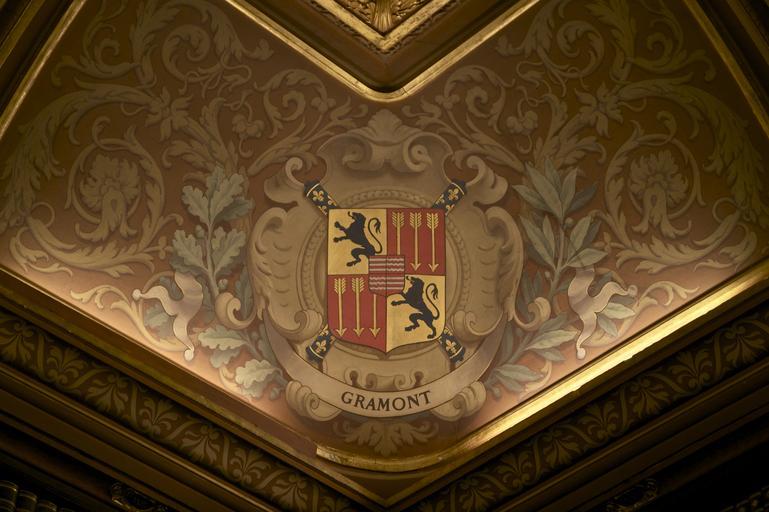| Keywords: Ceiling Chantilly CoA Gramont.jpg Château de Chantilly où figure une interprétation des armoiries d'un maréchal de Gramont probablement le Duc Antoine III Château de Chantilly One can see the CoA of a marshal of France of the Gramont family probably Duke Antoine III 2011-07-03 own Jebulon 49 11 38 2 N 2 29 7 7 E cc-zero QualityImage Uploaded with UploadWizard Antoine III de Gramont Ceilings in Picardie Paintings of coats of arms Marshal's batons in heraldry Coats of arms of House of Gramont Quality images by Jebulon Interiors of libraries of the Château de Chantilly Quality images of Oise |