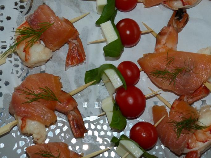 Keywords: celebration eat festival party food buffet dine restaurant gastronomy meal delicacy salmon shrimp tomato cold buffet