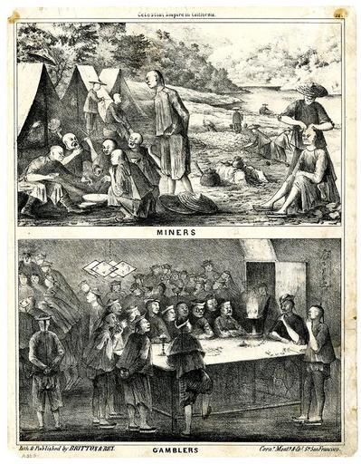 | Keywords: chinese california miners lithograph photo border text drawing outdoor Repository: California Historical Society Digital object ID: Kemble Spec Col 09_B026 Call number: Kemble Spec Col 09 Collection: California Lettersheet Collection Date: Undated Physical Description: 2 lithographs; 12 x 19 cm. each. General Note: Lith. & Published by Britton & Rey. Cornr. Monty. & Cala. Sts. San Francisco. Preferred citation: Celestial empire in California. Miners [upper] Gamblers [lower], California Lettersheet Collection, Kemble Spec Col 09, courtesy, California Historical Society, Kemble Spec Col 09_B026. Online finding aid: www.oac.cdlib.org/findaid/ark:/13030/c8rx9dfv Repository: California Historical Society Digital object ID: Kemble Spec Col 09_B026 Call number: Kemble Spec Col 09 Collection: California Lettersheet Collection Date: Undated Physical Description: 2 lithographs; 12 x 19 cm. each. General Note: Lith. & Published by Britton & Rey. Cornr. Monty. & Cala. Sts. San Francisco. Preferred citation: Celestial empire in California. Miners [upper] Gamblers [lower], California Lettersheet Collection, Kemble Spec Col 09, courtesy, California Historical Society, Kemble Spec Col 09_B026. Online finding aid: www.oac.cdlib.org/findaid/ark:/13030/c8rx9dfv |