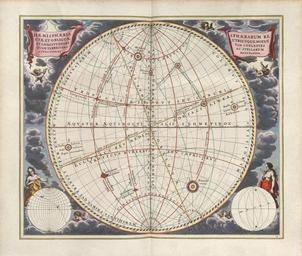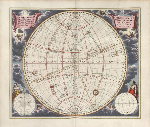 | Keywords: Cellarius Harmonia Macrocosmica - Haemisphaeria Sphaerarum Rectae et Obliquae.jpg Andreas Cellarius Harmonia macrocosmica seu atlas universalis et novus totius universi creati cosmographiam generalem et novam exhibens Plate 12 HÆMISPHÆRIA SPHÆRARUM RECTÆ ET OBLIQUÆ UTRIUSQUE MOTUS ET LONGITUDINES TAM COELESTES QUAM TERRESTRES AC STELLARUM AFFECTIONES MONSTRANTIA - Hemispheres displaying both the celestial and terrestrial motions and longitudes of either sphere the upright sphere i e the equatorial co-ordinate system and the oblique sphere i e the ecliptic co-ordinate system along with the influences of the stars http //www phys uu nl/~vgent/cellarius/cellarius_plates htm 1661 Andreas Cellarius Author died more than 70 years ago - public domain PD-old-100 Cellarius Harmonia Macrocosmica |