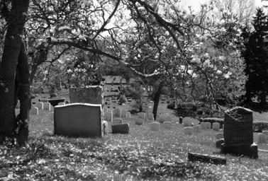 Keywords: cemetery graveyard magnolia tree gravestone tombstone dead death outdoors nature landscape stone black white eerie spooky creepy branch grass tree