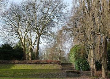 Keywords: cemetery park stairs trees winter leaves