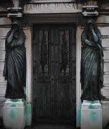 Keywords: cemetery pere-lachaise paris death doors monument statues gray day