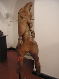 | Keywords: Centauri.JPG scultura in legno di teak dimensione maz 185 cm circa Celle Ligure GFDL Cc-by-sa-3 0-migrated Commento generale del critico sulla scultura di Lupo Rosso La scultura ricerca di soluzioni tecniche e rappresentazione delle emozioni Gran parte delle conversazioni sulla scultura avute con il maestro è stata spesa intorno a problemi relativi alla specifica ricerca di alchimistiche combinazioni tra materiali lapidei oppure sui vizi e le virtù delle pietre naturali le più e le meno pregiate come quelle più o meno lavorabili e ancora su complessi studi per ottenere l ™effetto del bronzo lavorando la pietra e così via Questi racconti avvincenti che spiegano il nucleo della ricerca di Alfonso Gialdini si dirigono poi abitualmente verso l ™affascinante rievocazione della volta in cui riuscì a procurarsi per farci una scultura uno splendido e unico blocco di legno tek -forse l ™albero di un ™antica nave o la trave di una vetusta costruzione- o di quando trovò in natura un piccolo e circoscritto giacimento di pietra da lavorare Il suo ufficio domestico separato dall ™officina in cui scolpisce ricorda un piccolo studiolo rinascimentale dove innumerevoli componenti si uniscono in un insieme unitario e indecifrabile arnesi curiosità fossili miniature fogli disposti ordinatamente in perfetto disordine  Evidentemente dello scultore genovese accanto alla priorità di una vivida umanità emerge il sostrato dei suoi compiuti studi di ingegneria meccanica che lo portano a legare fortemente l ™azione creativa e ideativa in lui libera e sensibilmente emotiva con i meccanismi di controllo e programmazione propri del metodo scientifico Il risultato è sorprendente perché si rivela capace tanto di far comprendere le virtù tecnico-costruttive della scultura quanto di trasportarci con immediatezza nel mondo delle idee e delle emozioni L ™artista investe sia in scultura figurativa sia in opere di ricerca dinamica astrattamente formali scolpisce in sintesi seguendo un ™ispirazione di tipo sintetico-antropomorfo  L ™oggetto principale del suo studio è la rappresentazione della figura femminile proposta in numerose varianti di sensibilità ferina Venere steatopigica di sapore tribale o esile ma monumentale tuffatrice sospesa per aria Ancora fatta tutta di membra calda protettrice dell ™uomo che avvolge con forti abbracci o fiera sostenitrice del primario contributo femminile alla vita quando non ambisce a suonare con il proprio corpo come la cassa armonica del violino L ™alternativa per il maestro sono le teste di cavallo naturalistiche rappresentazioni di colli nervosi negli studi per sé o dinamiche e forti macchine belliche come locomotive in corsa con le redine che diventano bielle cavalli che sono il simbolo della corsa alla liberazione dei popoli bestie forti e docili che stramazzano sacrificandosi di fronte a un ingiusto e violento trattamento del padrone Il Rompighiaccio sul tema-studio delle teste di ariete rappresenta ancora questa tensione potente difficilmente governabile lanciata verso un destino mortale A Genova il maestro dal 1995 mette a disposizione dei degenti dell ™ex ospedale psichiatrico di Quarto i propri mezzi e conoscenze organizzando corsi di scultura all ™interno di un programma di riabilitazione espressiva ottiene particolari successi nel veder migliorare anche attraverso questa esperienza la condizione degli allievi Marco Franzone saggista in storia arte genovese Liguria Lupo Rosso |