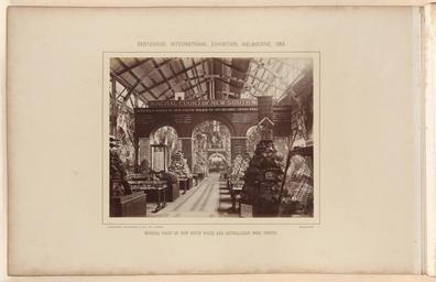 | Keywords: archives state records nsw staterecordsnsw newsouthwales blackandwhite photo border monochrome black and white Title: Centennial International Exhibition Melbourne 1888 - Mineral Court of New South Wales and Australasian wool trophy. Dated: c.01/08/1888 Digital ID: NRS20453-1-2_a052_000027 Series: NRS 20453 Photograph albums of Centennial International Exhibition, Melbourne 1888 Rights: No known copyright restrictions www.records.nsw.gov.au/about-us/rights-and-permissions We'd love to hear from you if you use our photos/documents. Many other photos in our collection are available to view and browse on our website using Photo Investigator. Title: Centennial International Exhibition Melbourne 1888 - Mineral Court of New South Wales and Australasian wool trophy. Dated: c.01/08/1888 Digital ID: NRS20453-1-2_a052_000027 Series: NRS 20453 Photograph albums of Centennial International Exhibition, Melbourne 1888 Rights: No known copyright restrictions www.records.nsw.gov.au/about-us/rights-and-permissions We'd love to hear from you if you use our photos/documents. Many other photos in our collection are available to view and browse on our website using Photo Investigator. |