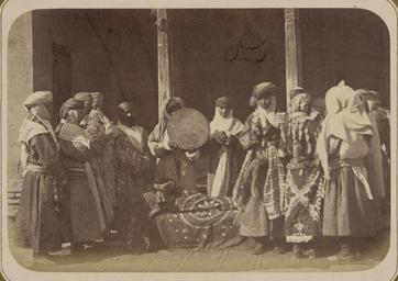 | Keywords: Central Asian Funerary Customs. A Group of Jewish Women at a Funeral WDL10848.png Artwork ru Кун Александ Людвигович 1840 1888 гг fr Kun Aleksandr L 1840-1888 en Kun Aleksandr L 1840-1888 zh 亚历山大·L· ,1840-1888 年 pt Kun Aleksandr L 1840-1888 ar كُن، ألكسندر ل ، 1840-1888 es Kun Aleksandr L 1840-1888 ru Пог ебальные обычаи жителей С едней Азии Г уппа ев ейских женщин на похо онах fr Coutumes funéraires d'Asie Centrale Groupe de femmes juives à des obsèques en Central Asian Funerary Customs A Group of Jewish Women at a Funeral zh 中亚的丧葬习俗 群犹太妇女 参加葬礼 pt Costumes funerários dos povos da Ásia Central Um grupo de mulheres judias em um funeral ar العادات الجنائزية لسكان وسط آسيا مجموعة من النساء اليهوديات في جنازة ru Эта фотог афия входит в этног афическую часть <em> Ту кестанского альбома </em><em></em> всесто оннего исследования Цент альной Азии п едп инятого после того как в 1860-х годах в егионе установилось господство Российской импе ии Альбом созданный по аспо яжению гене ала Константина Пет овича фон Кауфмана 1818 1882 годы пе вого гене ал-губе нато а оссийского Ту кестана состоит из четы ех частей в шести томах «Часть а хеологическая» два тома «Часть этног афическая» два тома «Часть п омысловая» один том и «Часть исто ическая» один том Основным составителем альбома был оссийский востоковед Александ Людвигович Кун аботавший совместно с иколаем Венедиктовичем Богаевским В альбоме п едставлено около 1200 фотог афий а также а хитекту ные планы аква ельные исунки и ка ты «Часть этног афическая» включает в себя 491отдельную фотог афию на 163 листах а фотог афиях изоб ажены п едставители азличных на одов егиона листы 1 33 повседневная жизнь и итуалы листы 34 91 а также виды де евень и го одов уличные то говцы и комме ческая деятельность листы 92 163 <br>Этног афические фотог афии; Пог ебальные об яды и це емонии; Ев еи; Фотог афические исследования fr Cette photographie est extraite de la partie ethnographique de l'<em>Album du Turkestan</em> étude visuelle complète de l'Asie centrale entreprise après que l'Empire russe prit le contrôle de la région dans les années 1860 Commandé par le général Konstantin Petrovich von Kaufman 1818 1882 premier gouverneur général du Turkestan russe l'album est composé de six volumes en quatre parties la partie archéologique deux volumes la partie ethnologique deux volumes la partie sur les métiers un volume et la partie historique un volume L'album fut essentiellement compilé par l'orientaliste russe Aleksandr L Kun assisté de Nikolai V Bogaevskii Il comporte près de 1200 photographies et inclut également des plans architecturaux des dessins à l'aquarelle et des cartes La partie ethnographique compte 491 photographies sur 163 planches montrant des individus des différentes peuplades de la région planches 1 à 33 des scènes de la vie quotidienne et des rites planches 34 à 91 ainsi que des vues de villages et de villes de vendeurs ambulants et d'activités commerciales planches 92 à 163 <br>Photographies ethnographiques; Rites et cérémonies funéraires; Juifs; Inventaires photographiques en This photograph is from the ethnographical part of <em>Turkestan Album</em><em> </em>a comprehensive visual survey of Central Asia undertaken after imperial Russia assumed control of the region in the 1860s Commissioned by General Konstantin Petrovich von Kaufman 1818 82 the first governor-general of Russian Turkestan the album is in four parts spanning six volumes Archaeological Part two volumes ; Ethnographic Part two volumes ; Trades Part one volume ; and Historical Part one volume The principal compiler was Russian Orientalist Aleksandr L Kun who was assisted by Nikolai V Bogaevskii The album contains some 1 200 photographs along with architectural plans watercolor drawings and maps The Ethnographic Part includes 491 individual photographs on 163 plates The photographs show individuals representing the different peoples of the region Plates 1 33 ; daily life and rituals Plates 34 91 ; and views of villages and cities street vendors and commercial activities Plates 92 163 <br>Ethnographic photographs; Funeral rites and ceremonies; Jews; Photographic surveys zh 这张照片出自<em> 其斯 相册 </em>的民族部分,该相册是俄罗斯 国 19 世纪 60 年代取得中亚控制 后, 手制 的 部针对该 区的综合 图像调查记录 相册由俄罗斯驻 其斯 (俄罗斯 国中亚属 的名称)首任 康斯 丁·彼得罗维奇·凡· 夫曼(Konstantin Petrovich von Kaufman,1818 82 年)将军赞助完成,共分六卷,四个部分: 古部分 (两卷); 民族部分 (两卷); 贸易部分 ( 卷)和 历史部分 ( 卷) 相册的主要编纂人是俄罗斯 方学 亚历山大·L· Aleksandr L Kun 亚历山大是 尼可莱·V·柏盖维斯基 Nikolai V Bogaevskii 的协助下完成相册的编纂 相册共含 1200 张照片,另 建筑平 图 水彩