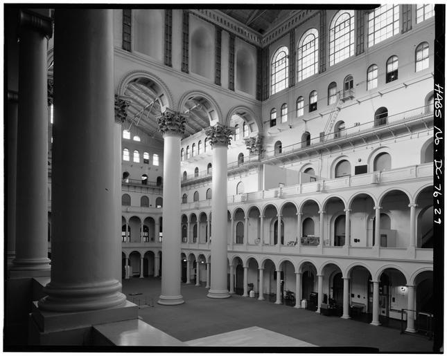 Keywords: Central court looking northwest.tif Photograph en 29 INTERIOR CENTRAL COURT LOOKING NORTHWEST FROM SECOND FLOOR - Pension Building 440 G Street Northwest Washington District of Columbia DC LOC-image hhh dc0199/photos 026929p 1981 accession number HABS DC WASH 152--29 HABS photographer HABS <gallery> CENTRAL COURT LOOKING NORTHWEST jpg jpg </gallery> 38 895 -77 03667 DC WASH 152--29 National Building Museum |