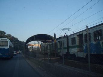 Keywords: Centro RAI staz ferr.jpg Roma stazione Centro Rai della ferrovia Roma-Viterbo metropolitana di Roma 2006-12-02 own assumed Carlomorino Roma Centro Rai train station COTRAL serie 100+200 blurry