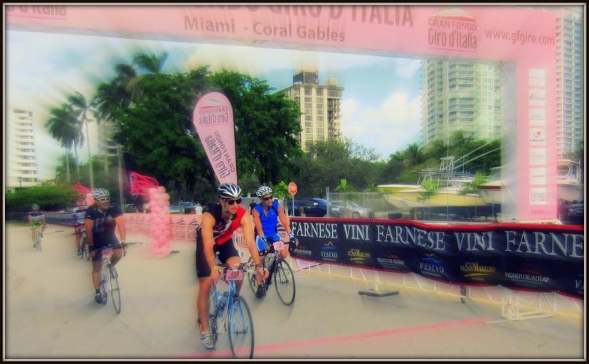 Keywords: Cyclists crossing the finish line in Coconut Grove Fla after a grueling 100 miler canon cyclists xpro miami powershot roadbike s110 s100 s95 dinnerkey grandfondo