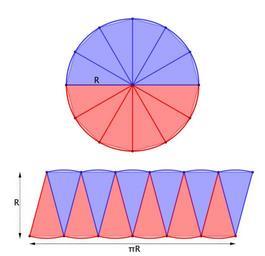 Keywords: Cercle12CircArea.svg en circle's area radius x mid-circumference fr aire du cercle rayon x demi-circonférence Own Proz 2010-03-13 v fl Circular sectors Circle area