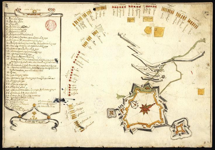 | Keywords: Cerco Campo Maior 1712.jpg en Plan of the siege of Campo Maior 1712 in the Book of various plants of this Kingdom Portugal and of Castile between 1699 and 1743 pt Plano do cerco a Campo Maior 1712 no Livro de varias plantas deste Reino e de Castela entre 1699 e 1743 http //purl pt/12158/1/P94 html Biblioteca Nacional de Portugal<br>Cota D A 7 A índice > 47 CORREIA João Tomás ca 1667- between 1699 1743 Institution Institution Biblioteca Nacional de Portugal PD-Art-100 Cartography in the BNP Fortress of Campo Maior Floor plans of fortresses in Portugal 18th-century fortress plans Files uploaded by User JotaCartas |