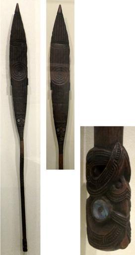 View Original:Ceremonial canoe paddle, c. 1880-1890, New Zealand, Maori people, kauri wood with paua shell inlay, --Honolulu Academy of Arts--.jpg (1396x2628)