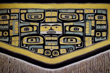 | Keywords: Ceremonial cape, Tlingit people, Chilkat clan, northwest coast of North America, 1850-1900 AD, cedar bark, mountain goat hair, sheep's wool, view 2 - Textile Museum, George Washington University - DSC09930.JPG en Exhibit in the Textile Museum George Washington University Washington DC USA Photography was permitted in the museum without restriction This work is old enough so that it is in the public domain 2015-03-26 16 10 00 own Daderot other versions PD-old-70 cc-zero Collections of the Textile Museum George Washington University Tlingit artefacts |