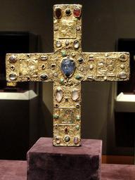 | Keywords: Ceremonial Cross of Count Liudolf, shortly after 1038, German, Lower Saxony, gold with enamel, gems, and pearls over wood core - Cleveland Museum of Art - DSC08522.JPG en Exhibit in the Cleveland Museum of Art Cleveland Ohio USA Photography was permitted in the museum without restriction This artwork is old enough so that it is in the public domain Daderot 2012-09-07 13 58 20 Daderot cc0 cc0 Guelph Treasure Cleveland Museum of Art Liudolf Margrave of Frisia | ||||