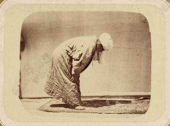 | Keywords: Ceremonies Performed by Muslims during Prayer. Kneeling WDL10795.png Artwork ru Кун Александ Людвигович 1840 1888 гг fr Kun Aleksandr L 1840-1888 en Kun Aleksandr L 1840-1888 zh 亚历山大·L· ,1840-1888 年 pt Kun Aleksandr L 1840-1888 ar كُن، ألكسندر ل ، 1840-1888 es Kun Aleksandr L 1840-1888 ru Об яды сове шаемые мусульманами п и молитве Поясной поклон Руку fr Cérémonies célébrées par les musulmans pendant la prière Génuflexion roukoua en Ceremonies Performed by Muslims during Prayer Kneeling zh 穆斯林 功中进行的仪式:跪 pt Cerimônias realizadas por muçulmanos durante a oração Genuflexão Ru'kua ar شعائر المسلمين أثناء الصلاة الركوع ru Эта фотог афия входит в этног афическую часть <em> Ту кестанского альбома </em><em></em> всесто оннего исследования Цент альной Азии п едп инятого после того как в 1860-х годах в егионе установилось господство Российской импе ии Альбом созданный по аспо яжению гене ала Константина Пет овича фон Кауфмана 1818 1882 годы пе вого гене ал-губе нато а оссийского Ту кестана состоит из четы ех частей в шести томах «Часть а хеологическая» два тома «Часть этног афическая» два тома «Часть п омысловая» один том и «Часть исто ическая» один том Основным составителем альбома был оссийский востоковед Александ Людвигович Кун аботавший совместно с иколаем Венедиктовичем Богаевским В альбоме п едставлено около 1200 фотог афий а также а хитекту ные планы аква ельные исунки и ка ты «Часть этног афическая» включает в себя 491отдельную фотог афию на 163 листах а фотог афиях изоб ажены п едставители азличных на одов егиона листы 1 33 повседневная жизнь и итуалы листы 34 91 а также виды де евень и го одов уличные то говцы и комме ческая деятельность листы 92 163 <br>Этног афические фотог афии; усульмане; Фотог афические исследования; олитва; Об яды и це емонии; Духовная жизнь; Тю кские на оды fr Cette photographie est extraite de la partie ethnographique de l'<em>Album du Turkestan</em> étude visuelle complète de l'Asie centrale entreprise après que l'Empire russe prit le contrôle de la région dans les années 1860 Commandé par le général Konstantin Petrovich von Kaufman 1818 1882 premier gouverneur général du Turkestan russe l'album est composé de six volumes en quatre parties la partie archéologique deux volumes la partie ethnologique deux volumes la partie sur les métiers un volume et la partie historique un volume L'album fut essentiellement compilé par l'orientaliste russe Aleksandr L Kun assisté de Nikolai V Bogaevskii Il comporte près de 1200 photographies et inclut également des plans architecturaux des dessins à l'aquarelle et des cartes La partie ethnographique compte 491 photographies sur 163 planches montrant des individus des différentes peuplades de la région planches 1 à 33 des scènes de la vie quotidienne et des rites planches 34 à 91 ainsi que des vues de villages et de villes de vendeurs ambulants et d'activités commerciales planches 92 à 163 <br>Photographies ethnographiques; Musulmans; Inventaires photographiques; Prière; Rites et cérémonies; Vie spirituelle; Peuples turciques en This photograph is from the ethnographical part of <em>Turkestan Album</em><em> </em>a comprehensive visual survey of Central Asia undertaken after imperial Russia assumed control of the region in the 1860s Commissioned by General Konstantin Petrovich von Kaufman 1818 82 the first governor-general of Russian Turkestan the album is in four parts spanning six volumes Archaeological Part two volumes ; Ethnographic Part two volumes ; Trades Part one volume ; and Historical Part one volume The principal compiler was Russian Orientalist Aleksandr L Kun who was assisted by Nikolai V Bogaevskii The album contains some 1 200 photographs along with architectural plans watercolor drawings and maps The Ethnographic Part includes 491 individual photographs on 163 plates The photographs show individuals representing the different peoples of the region Plates 1 33 ; daily life and rituals Plates 34 91 ; and views of villages and cities street vendors and commercial activities Plates 92 163 <br>Ethnographic photographs; Muslims; Photographic surveys; Prayer; Rites and ceremonies; Spiritual life; Turkic peoples zh 这张照片出自<em> 其斯 相册 </em><em> </em>的民族部分,该相册是俄罗斯 国 19 世纪 60 年代取得中亚控制 后, 手制 的 部针对该 区的综合 图像调查记录 相册由俄罗斯驻 其斯 (俄罗斯 国中亚属 的名称)首任 康斯 丁·彼得罗维奇·凡· 夫曼(Konstantin Petrovich von Kaufman,1818 82 年)将军赞助完成,共分六卷,四个部分: 古部分 (两卷); 民族部分 (两卷); 贸易部分 ( 卷)和 历史部分 ( 卷) 相册的主要编纂人是俄罗斯 方学 亚历山大·L· Aleksandr L Kun 亚历山大是 尼可莱·V·柏盖维斯基 Nikolai V Bogaevskii 的协助下完成相册的编纂 相册共含 1200 张照片,另 建筑平 图 