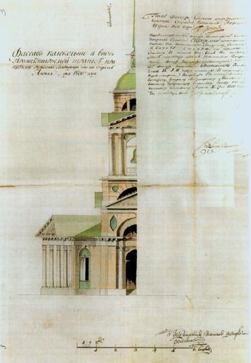Keywords: Cerkov rozhdestva na strelke 01.jpg ru Це ковь Рождества Бого одицы что на Ст елке Фасад колокольни и вновь п оекти уемой т апезной А х Д Балашов 1800 ЦИА ЦИА А х Д Балашов 1800 PD-old-100 Church of Nativity of the Theotokos in Kulishki