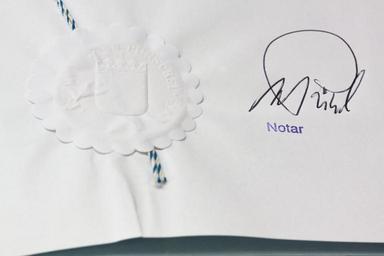 Keywords: certificate bavaria notary certification coat of arms ornament seal probative value document antiquarian statutory obligations declaration testament notarize notarized signature