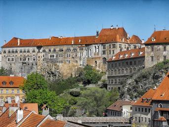 Keywords: cesky krumlov czech republic city buildings urban architecture castle landmark historic trees