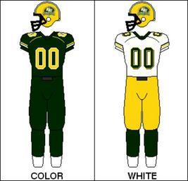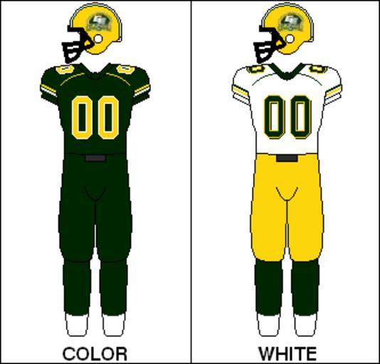 | Keywords: CFL Jersey EDM 2008.png en The Edmonton Eskimos wore 60 seasons decals on their helmets to commemorate their 60th season They also chose not to wear their third jerseys Green pants with green jerseys were slightly more prevalent having worn them five times and the gold pants four times In the Labour Day Classic and Rematch they wore a green EE helmet with an all-white combo in Calgary and an all-green combo in Edmonton Own Cmm3 2009-08-11 CFL Jerseys Edmonton Eskimos Green trousers Yellow trousers |