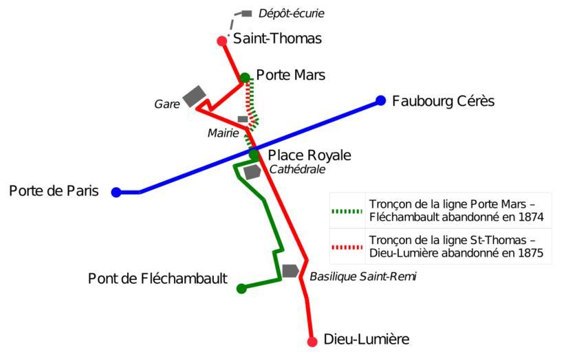 | Keywords: Cgo1876.svg Réseau de la Compagnie Générale des Omnibus de Reims en 1876 et modifications depuis 1872 Horse-powered omnibuses network in Reims in year 1876 and improvements from year 1872 Plus d'un siècle de transports en commun à Reims M Chenu et M Jailliard adapté par moi-même / adapted by myself 2007-11-17 Daiima <br /><div align center > toccolours width 75 cellpadding 7 +Les évolutions du réseau T U R de 1873 à 2000<br />Evolutions of the bus network in Reims from 1873 to 2000 ccccff align center Carte précédente<br />Previous map ccccff align center Carte actuelle<br />This map ccccff align center Carte suivante<br />Next map - FEFF7F align center FEFF7F align center Image Cgo1876 svg FEFF7F align center Image Ctr1887 svg - E6FF7F align center Première - First E6FF7F align center 1872 > 1876 > 1887 E6FF7F align center 1881 > 1887 > 1893 </div> Historical public transport maps of Reims |