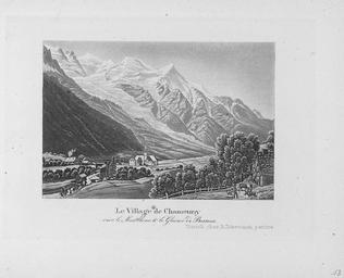 | Keywords: CH-NB-Souvenir du lac de Genève et ses environs-19550-page015.tif fr Livre Souvenir du lac de Genève et ses environs Vallée de Chamounie Grand St Bernard Pont à Fribourg etc Le village de Chamouny vers le Montblanc le glacier de Bossons 1860 Institution Swiss National Library nbdig-19550 author Public domain PD-old-100 Swiss National Library CH-NB-Souvenir du lac de Genève et ses environs User Swiss National Library/Attribution-Recommendation nbdig-19550 Media contributed by the Swiss National Library Historical images of Chamonix Historical images of Mont Blanc Glacier des Bossons |