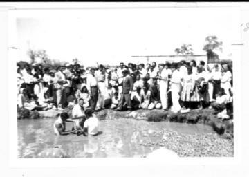 | Keywords: argentina baptism mission chaco indians chacoindians blackandwhite monochrome photo border team sport sport black and white Caption: 1962. Baptism among the Chaco indians. Citation: Mennonite Board of Missions. Photographs. Argentina 1942-1963. IV-10-7.2 Box 1 folder 32, photo #23. Mennonite Church USA Archives - Goshen. Goshen, Indiana. Caption: 1962. Baptism among the Chaco indians. Citation: Mennonite Board of Missions. Photographs. Argentina 1942-1963. IV-10-7.2 Box 1 folder 32, photo #23. Mennonite Church USA Archives - Goshen. Goshen, Indiana. |