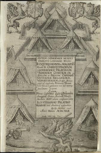 Keywords: Chadkievičy. Хадкевічы (1642).jpg Хадкевічаў Chadkievičy «Septem Chodkiewicii heroes exercitvs Lithvanici dvces Christophorvm Chodkiewicz palatinvm Vilnensem comitem in Szklow et Biichow capitaneum Krevensem Bielocensem Wisnieviensem etc etc sollenni pompa ad capessendos palatinatus Vilnensis fasces Vilnam ingredientem suis sub tentorijs gratulatione excipiunt» выдадзеная ў д ука ні Віленскай езуіцкай акадэміі en Book by Peter Kazimir Lacki about the glorification of the Chodkiewicz family «Septem Chodkiewicii heroes exercitvs Lithvanici dvces Christophorvm Chodkiewicz palatinvm Vilnensem comitem in Szklow et Biichow capitaneum Krevensem Bielocensem Wisnieviensem etc etc sollenni pompa ad capessendos palatinatus Vilnensis fasces Vilnam ingredientem suis sub tentorijs gratulatione excipiunt» 1642 The author of the engravings Conrad Getke Printed in the printing house of the Vilno Jesuit Academy ru Книга Пет а Казими а Ляцкога о гло ификации ода Ходкевичей «Septem Chodkiewicii heroes exercitvs Lithvanici dvces Christophorvm Chodkiewicz palatinvm Vilnensem comitem in Szklow et Biichow capitaneum Krevensem Bielocensem Wisnieviensem etc etc sollenni pompa ad capessendos palatinatus Vilnensis fasces Vilnam ingredientem suis sub tentorijs gratulatione excipiunt» 1642 Авто г авю ы Кон ад Гётке апечатано в типог афии Виленской иезуитской академии be Кніга Пят а Казімі а Ляцкага аб гла ыфікацыі оду Хадкевічаў «Septem Chodkiewicii heroes exercitvs Lithvanici dvces Christophorvm Chodkiewicz palatinvm Vilnensem comitem in Szklow et Biichow capitaneum Krevensem Bielocensem Wisnieviensem etc etc sollenni pompa ad capessendos palatinatus Vilnensis fasces Vilnam ingredientem suis sub tentorijs gratulatione excipiunt» 1642 ад укавана ў д ука ні Віленскай езуіцкай акадэміі 1 Liškevičienė J XVI-XVIII amžiaus knygų grafika V 1998 <br> 2 Biblioteka Narodowa SD XVII 4 101 http //polona pl/item/25594933/4/ Conradt Götke fl 1635-1652 1642 120px PD-old-100 Chodkiewicz family Konrad Götke |