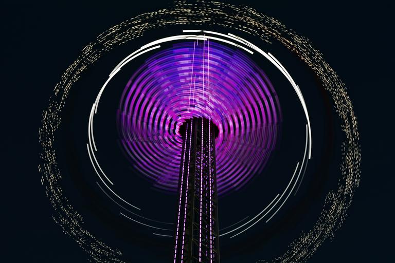 | Keywords: chain aviator tower high 80m fair hustle and bustle year market folk festival carnies fairground pleasure fun leisure fun activity colorful entertainment speed color fast sit chains view no fear of heights upward height turn night lights light attraction |