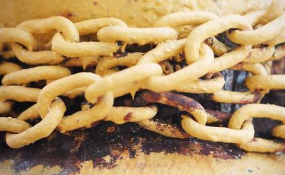Keywords: chain links chain rusty yellow paint dirty grunge metal steel chains links rust