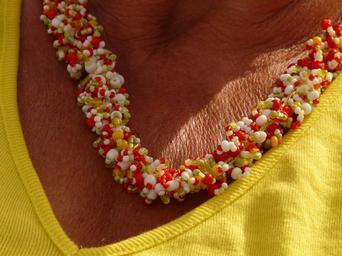 Keywords: chain necklace jewellery colorful beads yellow summer summer jewelry neck skin tanned
