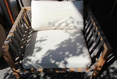 Keywords: chair garden chair cozy inviting wood plastic pillow light shadow