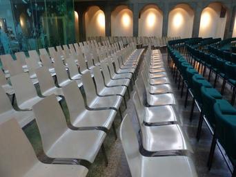 Keywords: chairs chair series rows of seats white green seat hall