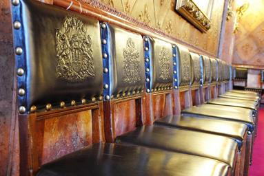 Keywords: chairs coat of arms noble old antique middle ages knight relief lion hamburg historically places of interest row meeting training hall castle building romantic old town architecture furniture leather history