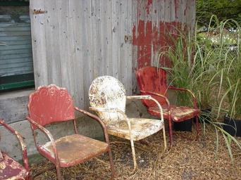 Keywords: chairs old rustic furniture antiques dirty abandoned weathered aged forgotten outside outdoors seating seats