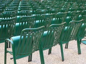 Keywords: chairs repetition spectator green cinema theatre version