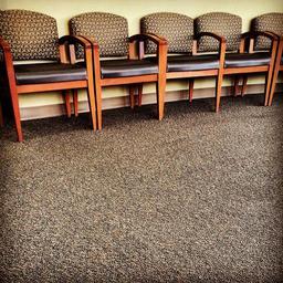 Keywords: chairs row office waiting room brown carpet seats seating