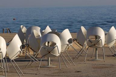 Keywords: chairs seats restaurant summer outdoor tourism holiday relaxation white seascape