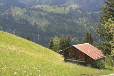 Keywords: chalet cabin cottage alps alpine switzerland house hillside mountain mountains scenery scenic hut vacation holiday picturesque european europe swiss remote rural grass green nature building hill woods trees forest