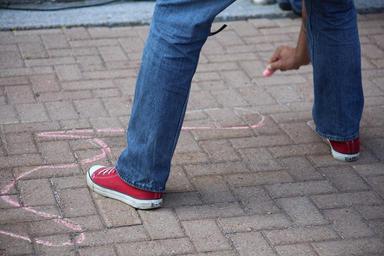 Keywords: chalk outline street man human drawing sketch person body crime dead victim police body outline outdoors sidewalk csi evidence murder forensics protective policing