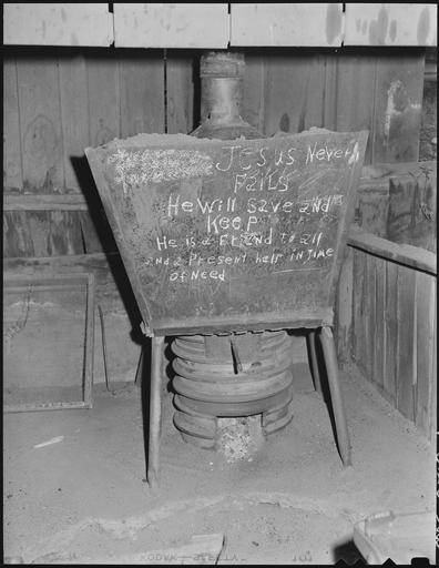 | Keywords: Chalk written sign on sand dryer. P V & K Coal Company, Clover Gap Mine, Lejunior, Harlan County, Kentucky. - NARA - 541291.tif Scope and content General notes 541291 Local identifier 245-MS-2519L Department of the Interior Solid Fuels Administration For War 04/19/1943 - 06/30/1947 NARA-Author Lee Russell 1903-1986 Photographer 2489414 <br /> Still Picture Records Section Special Media Archives Services Division NWCS-S National Archives at College Park 8601 Adelphi Road College Park MD 20740-6001 1946-09-13 Record group Record Group 245 Records of the Solid Fuels Administration for War 1937 - 1948 Record group ARC 572 Photographs of the Medical Survey of the Bituminous Coal Industry compiled 1946 - 1947 Series ARC 540230 File unit File unit ARC Variant control numbers NAIL Control Number NWDNS-245-MS-2519L yes Other versions <gallery> File Chalk_written_sign_on_sand_dryer _P_V_ _K_Coal_Company _Clover_Gap_Mine _Lejunior _Harlan_County _Kentucky _-_NARA_-_541291 tif tif File Chalk_written_sign_on_sand_dryer _P_V_ _K_Coal_Company _Clover_Gap_Mine _Lejunior _Harlan_County _Kentucky _-_NARA_-_541291 jpg jpg </gallery> NARA-cooperation PD-USGov Coal mining in Appalachia Pennsylvania Virginia Kentucky Coal Company Jesus Christ in art Jesus Saves slogan Christian media Religion in the 1940s Signs in Kentucky NARA TIF images with categorized JPGs |