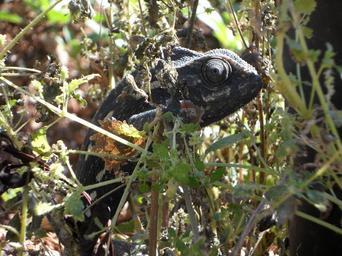 Keywords: chameleon common chameleon european chameleon chamaeleo chamaeleon chamaeleonidae reptile animal green head eye close hidden disguised camouflage