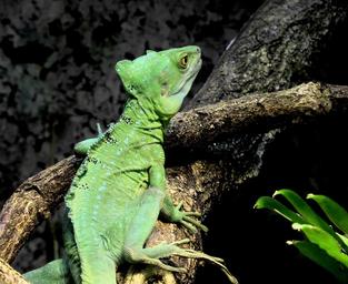 Keywords: chameleon green reptile animal insect eater head eye disguised dragon close nature jungle hidden lizard climb branch legs zoo terrarium creature scale tree color
