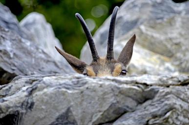 Keywords: chamois alpengämse hide hiding place eyes horns end weapons horned caprinae rupicapra rupicapra rock alpine mountains animal