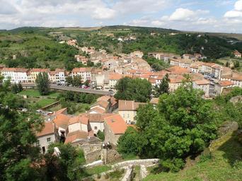 | Keywords: Champeix Vue générale1.JPG fr Champeix comm du Puy-de-Dôme France région Auvergne Vue générale sur le bourg de Champeix depuis le château du Marchidial Nous regardons vers le nord La moitié gauche de la photo est rayée par la route départementale 996 longée par la rivière Couze Chambon dont on distingue les eaux en contrebas du quai à droite maisons alignées sur la place de la Halle 2011-07-14 own Torsade de Pointes cc-zero Uploaded with UploadWizard Champeix | ||||