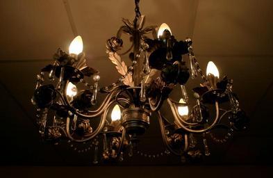 Keywords: chandelier metal ornate light hanging light bulbs functional ceiling