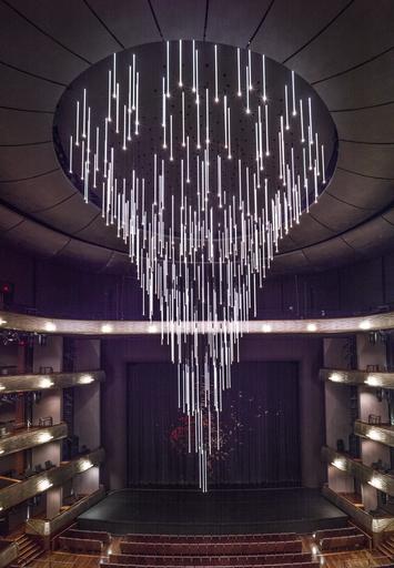 Keywords: Chandelier and stage inside the auditorium of the Margot & Bill Winspear Opera House, part of the AT&T Performing Arts Center complex in the Arts District of Dallas, Texas LCCN2015630543.tif 1 photograph digital tiff file color Notes Designed by Foster + Partners under Pritzker Prize-winning architect Norman Foster the opera house was engineered specifically for opera and musical theater performances as well as having special stage design for ballet and other forms of dance The custom chandelier consisting of 318 internally illuminated rods forming a 40-foot-high and 40-foot-diameter lighting fixture retracts into the ceiling once a performace starts Various configurations of the rods can produce several effects such as a Christmas-tree shape the inverse of what's shown here ; Gift; The Lyda Hill Foundation; 2014; DLC/PP-2014 054 ; Title date and keywords based on information provided by the photographer ; Forms part of Lyda Hill Texas Collection of Photographs in Carol M Highsmith's America Project in the Carol M Highsmith Archive ; Credit line The Lyda Hill Texas Collection of Photographs in Carol M Highsmith's America Project Library of Congress Prints and Photographs Division 2014 Creator Carol M Highsmith Library of Congress Catalog http //lccn loc gov/2015630543 Image download https //cdn loc gov/master/pnp/highsm/30300/30307a tif Original url http //hdl loc gov/loc pnp/highsm 30307 No known restrictions on publication LOC-image highsm 30307 PD-Highsmith Images uploaded by Fæ Lyda Hill Texas Collection of Photographs in Carol M Highsmith's America Project in the Carol M Highsmith Archive The Lyda Hill Texas Collection of Photographs in Carol M Highsmith's America Project Library of Congress Prints and Photographs Division Photographs by Carol M Highsmith