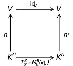 Keywords: Change of basis squared.svg en Commutative diagram of change of basis with superfluous identity and additional equation own Daniel5Ko Linear algebra Commutative squares
