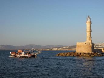Keywords: chania crete island greek rocks nature landscape mediterranean sea port beach water seaside blue shoreline sea sunset atmosphere ship tourism sun boat in the evening light
