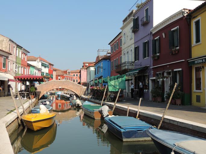 Keywords: channel colorful houses boats reflections burano island burano multicolor
